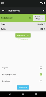3 - Fonctionnalités très larges : Vous pouvez traiter tous les flux de vente (du Devis jusqu'au tickets de caisse), Vos smartphones peuvent communiquer avec vos terminaux CB Ingenico WiFi afin de fiabiliser les encaissements à un moindre coût bancaire. Vous pouvez consulter la fiche des articles, ses stocks, ses prix, ses encours de commande. Vous pouvez réaliser vos inventaires en scanant vos articles à l'aide de votre appareil photo.