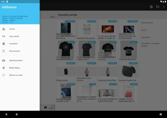 Transformez votre téléphone mobile en véritable outil dans votre entreprise. Vous pourrez encaisser, consulter vos stocks, saisir vos commandes, réaliser vos inventaires. C'est très simple, vous téléchargez l'application, vous vous identifiez en scanant votre QR Code sur ADDVANCE, et vous pouvez travailler de manière autonome.