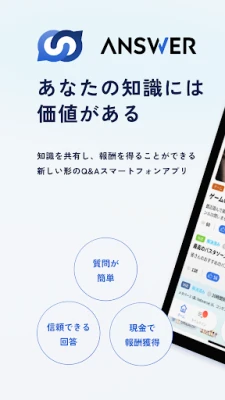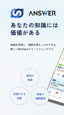 ANSWERは、知識を共有し、報酬を得ることができる新しい形のQ&Aスマートフォンアプリです。