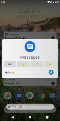 Clearly displays notifications from the top bar in the widget with fast reply in conversations or media player controls.