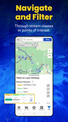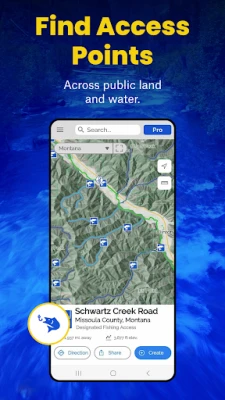 Start a PRO trial for free when you install the app. Unlock access to public land parcels and boundaries, classified trout streams, custom access points, offline maps and more for seven days.